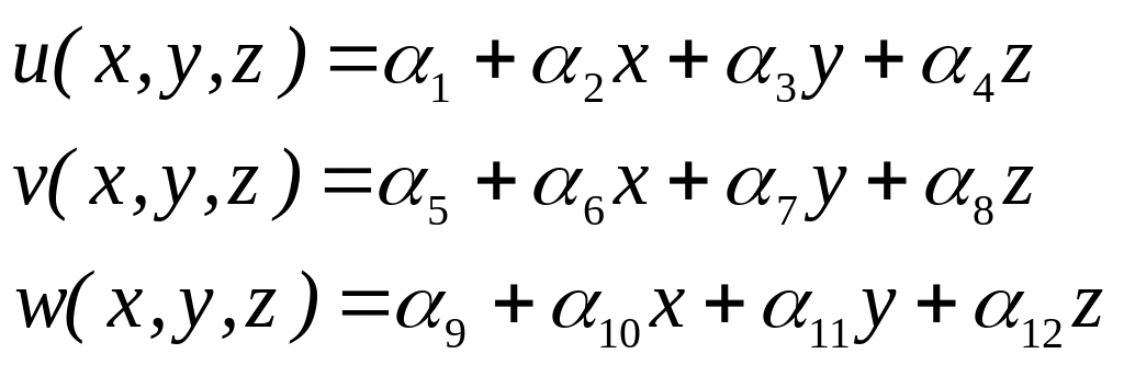 Перемещения вдоль осей x,y,z распределяются по линейному закону: