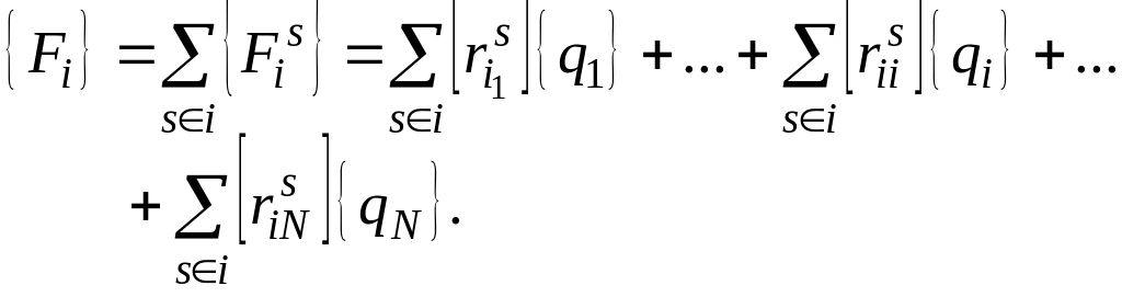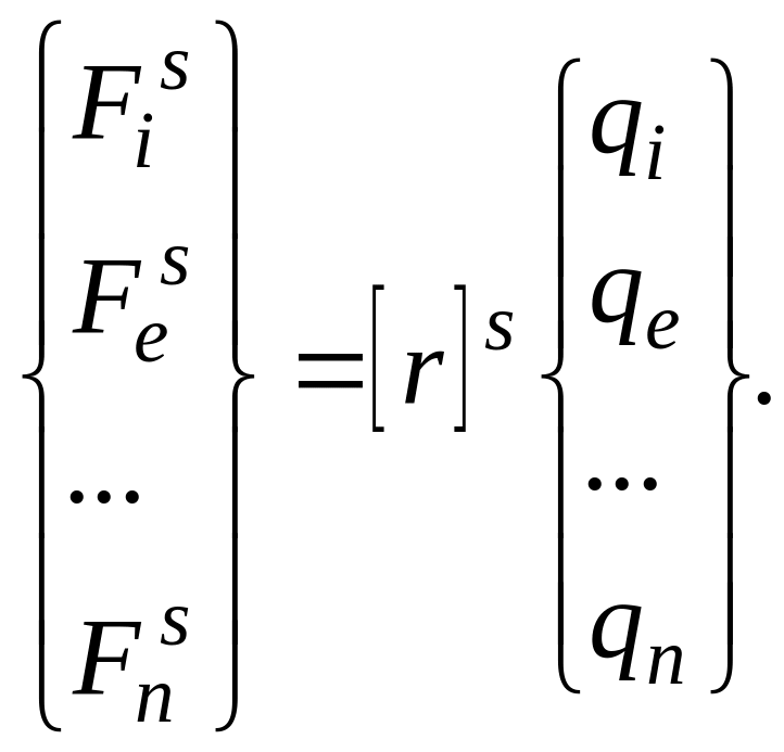 Для всей системы вектор суммарных узловых усилий, действующих со стороны узлов на сходящиеся в них элементы и вызванных перемещениями узлов: