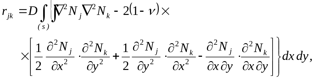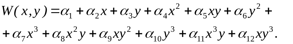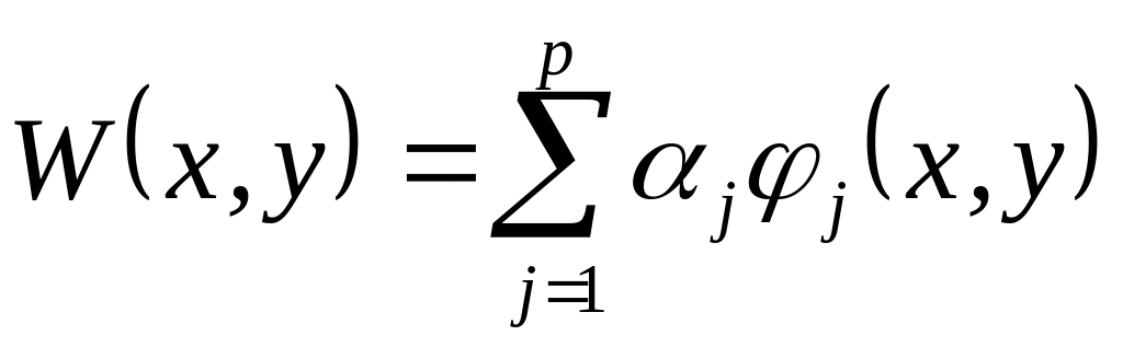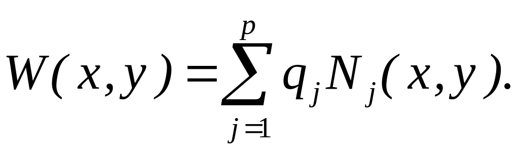 Выражение преобразуем так, чтобы аппроксимирующая функция W(х,у) содержала р обобщенных координат qj – прогибов и углов поворота элемента.