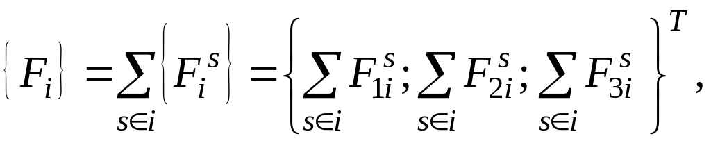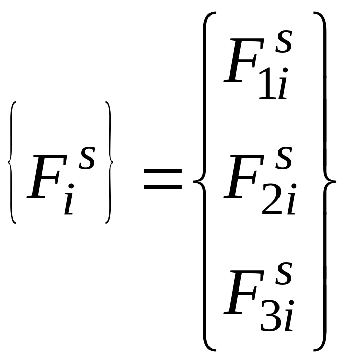 Перемещения узла i образуют вектор из трех компонент, которые вызывают действие со стороны узла i на элемент S одной силы и двух моментов, образующих вектор (34):