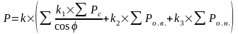 Если мощности отдельных силовых потребителей существенно отличаются от остальных, их следует суммировать отдельно с целью более правильного употребления коэффициентов спроса. В этом случае первое слагаемое в скобках представляется в виде суммы нескольких слагаемых.