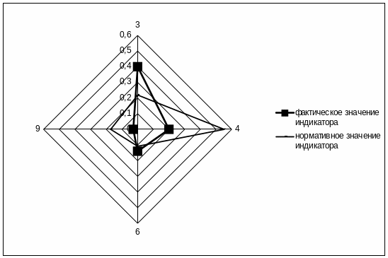 На основе фактических и пороговых значений показателей строится графическая интерпретация значения индикаторов экономической безопасности (рис.2, 3).