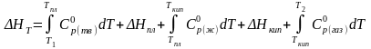 Если в рассматриваемом интервале температур происходит изменение фазовых состояний системы, то в выражение (3) необходимо добавить значения фазовых переходов. В общем случае изменение энтальпии, если в заданном интервале Т1 - Т2 имеют место фазовые переходы плавления и кипения,