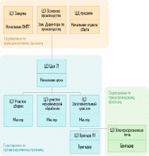 При наличии у предприятия более чем одного направления деятельности, которое можно определить как отдельный бизнес, возможна ситуация, когда организационная структура не поддерживает такое разделение. Т.е. одно структурное подразделение работает на все бизнесы компании, или подразделения одного бизнес-процесса (в рамках законченного производственного цикла) принадлежат разным вертикалям управленческой структуры и сгруппированы по функциональной принадлежности (все производства, все продажи и т.д.).