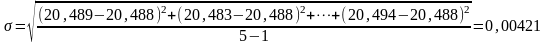 - вычислим среднее квадратическое отклонение σ по формуле (2.3):