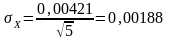 - вычислим среднее квадратическое отклонение для среднего арифметического по формуле (2.5):