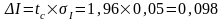 - определим по формуле (2.6) границы доверительного интервала, в котором с заданной вероятностью Рд = 0,98 и величиной коэффициента Стьюдента tс=3,75 (табл. П. 2.1) находится полученное значение: