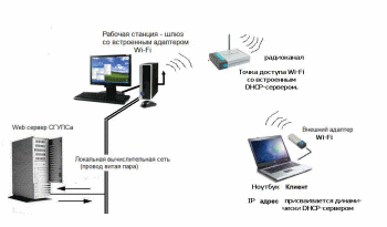 В предлагаемой лабораторной работе мы освоим создание простейшей сети Wi-Fi на примере подключения ноутбука к точке доступа Wi-Fi с использованием статической и динамической IP-адресации с последующим доступом к WEB серверу сети СГУПСа через шлюз.