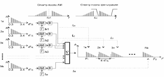Зарисуйте спектр многоканального сигнала для заданного количества каналов N, определите граничные частоты F1 и F2.