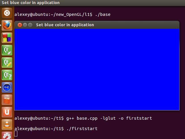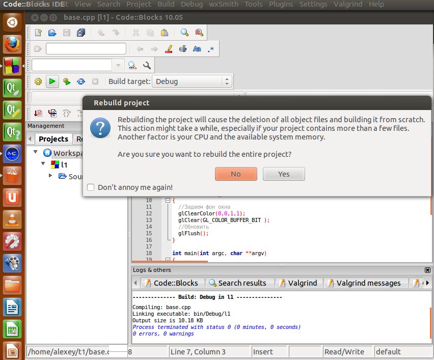 Рис. 7. Создание и работа с glut проектом в Code::Blocks