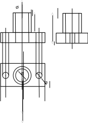 Для уменьшения количества изображений допускается на видах показывать необходимые невидимые части поверхности предмета штриховыми линиями. Например, на рис. 4 на двух видах – главном и виде слева – показан размер цилиндрических отверстий и их глубина.
