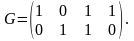 Пример 3. Рассмотрим двоичный линейный (4,2,2) код с порождающей матрицей