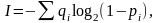 где pi – вероятность того, что будет выбран i-й символ из полного набора в n символов, которые вырабатывает источник сообщений, I измеряется в битах (от англ binarydigit – двоичная система).