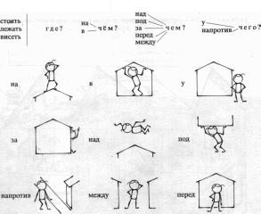 Таблица 1. Выражения пространственных отношений в простом предложении (место и направление)