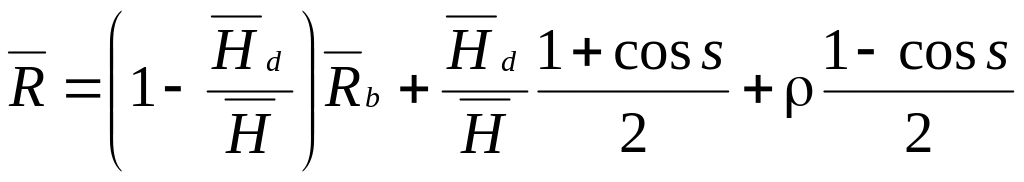 Средний угол падения диффузного излучения можно принять равным 60о. Для отражённого от земли излучения средний угол падения принимается также 60о.