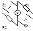 48. В схеме к задаче 47 , ξ1 = ξ2, R2 = 2R1. Во сколько раз ток, текущий через вольтметр, больше тока, текущего через R2? Сопротивлением источников пренебречь.