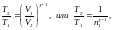 Температуры и объёмы газа, совершающего адиабатный процесс, связаны между собой соотношением