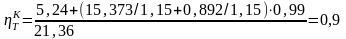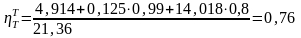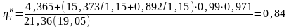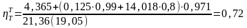 Но, одновременно с увеличением выработки электроэнергии снижается тепловая мощность, отпускаемая потребителю, на величину Qp, следовательно, КИТ для когенерационного режима определяется по формуле