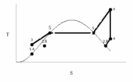 На рис. 13 представлен предельный цикл ВПУ. Для наглядности масштабы процессов не соблюдены, например процессы переохлаждения конденсата и работы питательного насоса ВПГ укрупнены.