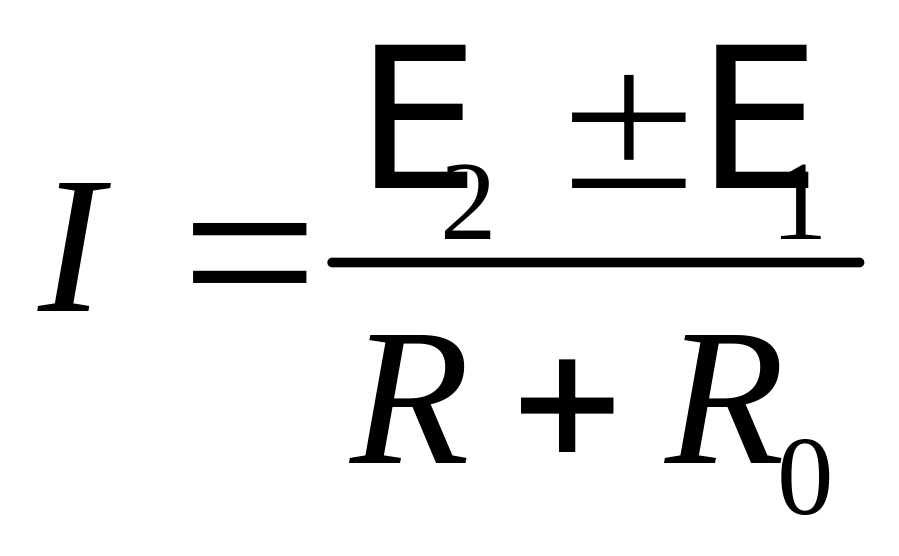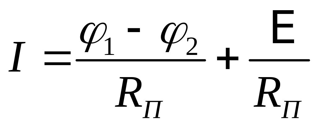 где (1 - 2) – разность потенциалов на концах участка цепи; Ei – алгебраическая сумма ЭДС источников тока, входящих в состав участка; RП – полное сопротивление участка цепи.