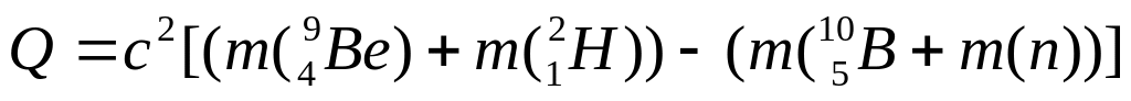 (где в первых круглых скобках указаны массы исходных ядер, во вторых – массы ядер продуктов реакции). При расчетах вместо масс ядер используют массы нейтральных атомов, так как, согласно закону сохранения зарядовых чисел, в ядерной реакции (а зарядовое число Z нейтрального атома равно числу электронов в его оболочке), получаются одинаковые результаты.