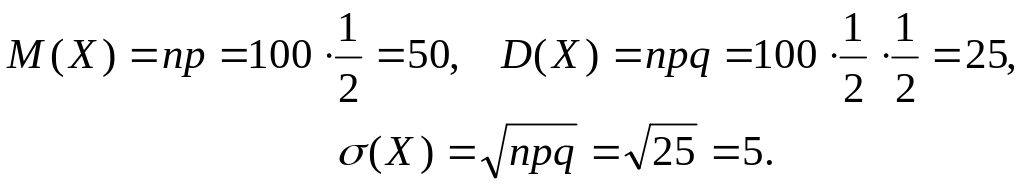 4. Случайная величина X определена как число выпавших гербов в результате 100 бросаний монеты. Вычислить математическое ожидание, дисперсию и среднее квадратическое отклонение X.