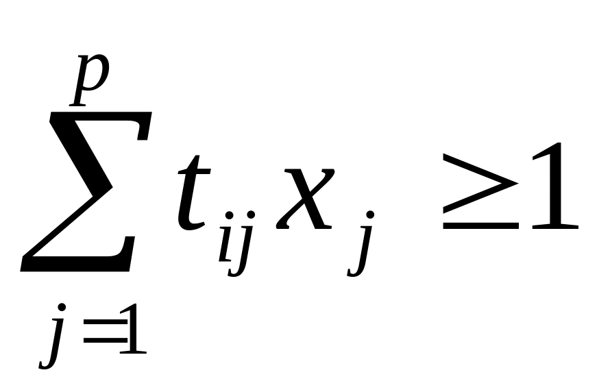 Дана булева матрица Т размера р на р. Каждому столбцу приписан вес cj. Найти такое множество столбцов минимальной стоимости, чтобы любая строка содержала единицу хотя бы в одном из выбранных столбцов.