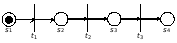 Смоделируем данную атаку с помощью сети Петри-Маркова. Обозначения элементов этой сети приведены ниже, si — позиции, tj — переходы: