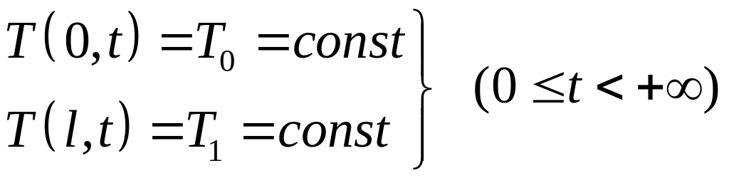Ограничимся рассмотрением случая, когда на концах стержня поддерживается постоянная температура, т.е. когда граничные условия имеют вид