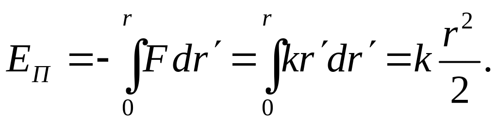 Потенциальная энергия системы «содержится» в пружине, ее нетрудно найти, определив работу, необходимую для растяжения (сжатия) пружины на величину r:
