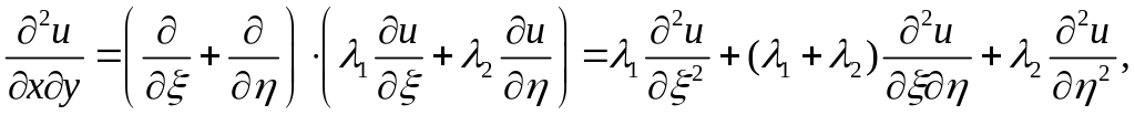 Умножим эти вторые производные соответственно на a, 2b и c, а затем их сложим, тогда левая часть уравнения (2.6) примет вид