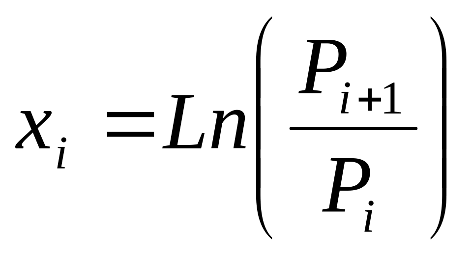 в качестве переменной величины принимают логарифм отношения последующей цены к цене предыдущей (обычно это цены закрытия), т.е. xi равен натуральному логарифму ценового изменения: