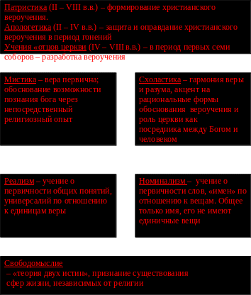 Основные положение христианского вероучения принимают в религиозной философии и теологии форму руководящих установок, которые определяют способ восприятия, осмысления и переработки мыслительного материала, то есть форму основных принципов религиозно-философского теоретизирования и мировоззрения.