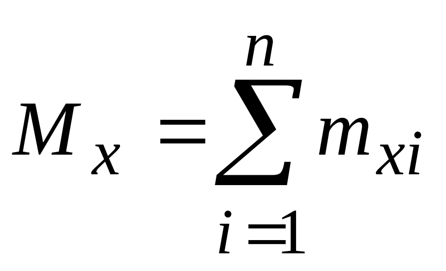 Изгибающий момент М х в сечении балки численно равен алгебраической сумме моментов всех внешних сил относительно центра тяжести рассматриваемого сечения, действующих на отсеченную часть балки: