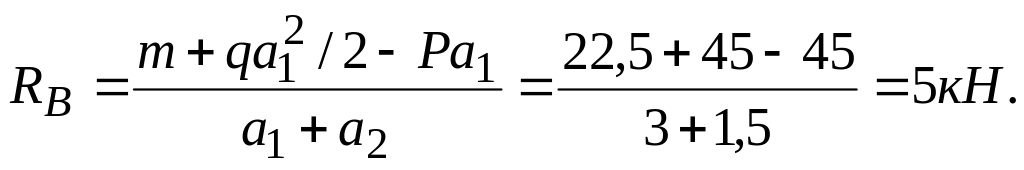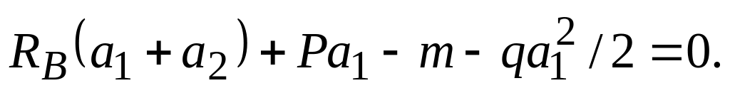 Горизонтальная составляющая для шарнирно-неподвижной опоры Н = 0, так как нет сил, наклонных или параллельных оси z. Для определения реакций RА и RВ записываем два уравнения равновесия. Уравнение моментов всех сил относительно точки А