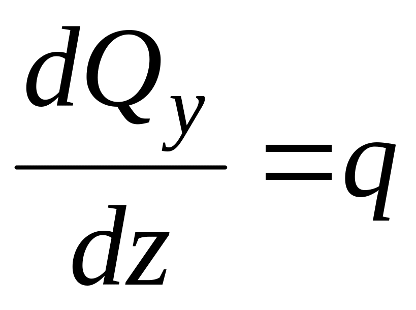 Поперечная сил. Q у, изгибающий момент М х и интенсивность распределенной нагрузки q связаны дифференциальными зависимостями Д.И. Журавского
