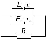 5. Два параллельно соединенных элемента с одинаковыми ЭДС E1=E2 =2В и внутренними сопротивлениями r1 = 1 Ом, r2 = 1,5 Ом замкнуты на внешнее сопротивление R = 1,4 Ом. Определите ток, протекающий во внешней цепи.