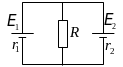 6. Какой ток течет через сопротивление R при следующих параметрах схемы: E1=E2 =2В, r1= 1 Ом, r2 = 2 Ом, I1 = 1 А?