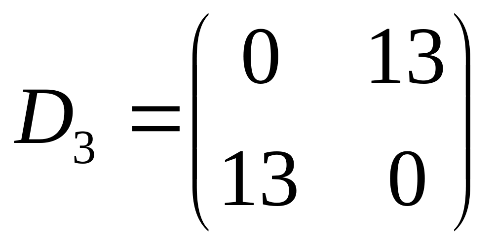 Матрица расстояний D2 между тремя кластерами на втором шаге имеет вид