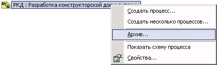 Выполненный процесс автоматически помещается в архив шаблона, по которому был создан процесс. Для просмотра архива процессов по конкретному шаблону необходимо в контекстном меню шаблона выбрать пункт «Архив…»: