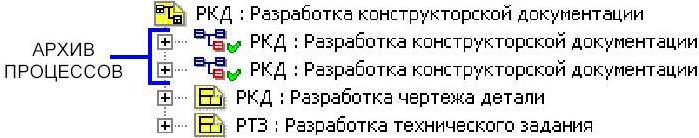 Архив процессов отобразится в дереве объектов модуля PDM на уровне шаблона: