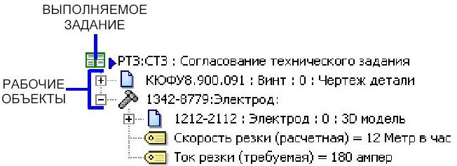 Рис. 3.48. - Отображение рабочих объектов задания в дереве