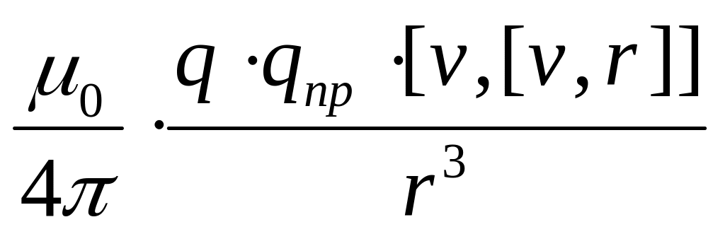 где Fэл – электрическая составляющая, не зависящая от движения зарядов и совпадающая с законом Кулона; Fм – магнитная составляющая, зависящая от скорости движения электрических зарядов, k – коэффициент пропорциональности, равный k = 1/4πε0, с – скорость света. Магнитная составляющая может быть приведена к виду: