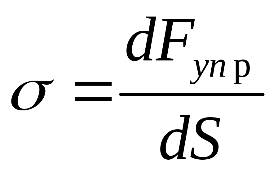 Напряжение называют нормальным σн, если сила направлена по нормали к площадкe dS, и касательным σ, если она направлена по касательной к этой площадке.