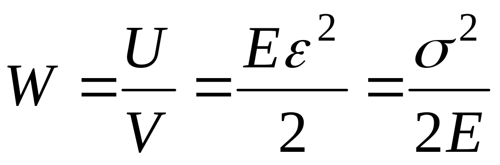 Объемная плотность упругой энергии W, т.е. энергия, приходящаяся на единицу объема растянутого (сжатого) стержня, равна