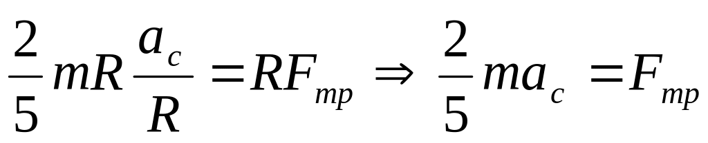 Найти ускорение центра однородного шара, скатывающегося без скольжения по наклонной плоскости, образующей угол с горизонтом. Чему равна сила трения между шаром и плоскостью?