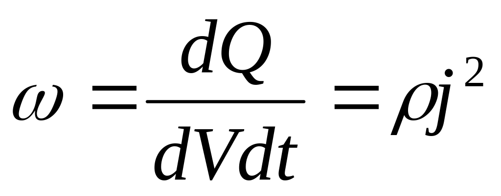 Количество тепла dQ, выделяемого за единицу времени в единице объема, называют удельной тепловой мощностью тока .