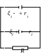 4.22. Два источника тока (ξ1 = 8 В, r1 = 2 Ом, ξ2 = 6 В, r2= 1,5 Ом) и реостат сопротивлением R = 6 Ом соединены как показано на рисунке. Вычислить силу тока, текущего через реостат