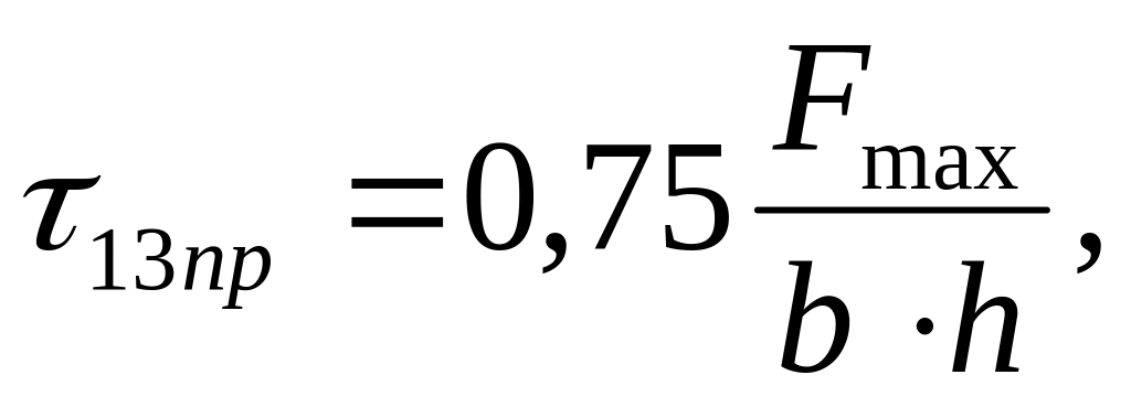 Концы образца устанавливаются на двух опорах, допускающих боковое перемещение. Нагружение производится с помощью нагружающего валика непосредственно в геометрический центр образца. Пределел прочности τ13пр определяется как отношение максимальной нагрузки Fmax, предшествующей разрушению образца, к начальной площади поперечного сечения образца: