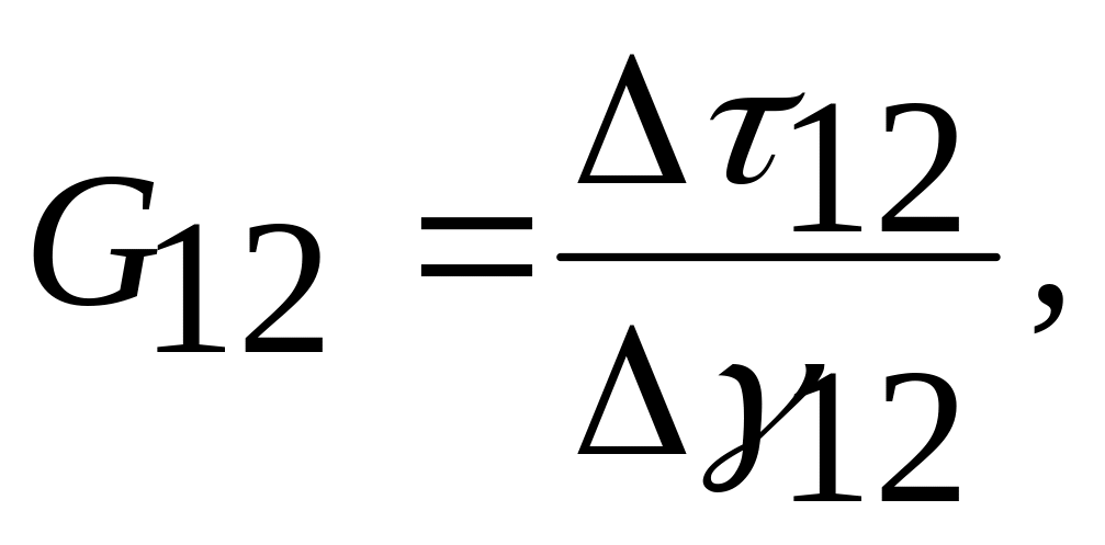 где Δτ12 – разность в значениях сдвиговых напряжений, соответствующих двум различным точкам на линейном участке кривой τ12 как функция сдвиговой деформации γ12, МПа; Δγ12 – разность в значениях сдвиговых деформаций, соответствующая Δτ12 на зависимости τ12 = f(γ12).
